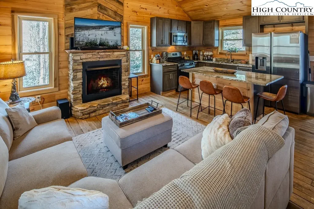 This charming Creekside cabin offers the perfect blend of comfort and nature with its well-designed floor plan and picturesque setting. On the main level, you'll find easy access and parking alongside impressive vaulted ceilings and custom hardwood floors that exude old-world charm. The open living area seamlessly connects the primary bedroom with ensuite bath, laundry, and a convenient powder room, making it comfortable for everyday living. Venture downstairs to discover two additional bedrooms, a dedicated office/desk area, a bathroom, and a spacious den, excellent for entertaining guests or relaxing with family. Both levels feature covered decks that invite you to soak in the serene sounds of nature and the gentle babbling of the nearby creek. The outdoor space is equally inviting, with a lush yard leading to a cozy stone firepit area alongside the creek. Plus, you're just steps away from the Grassy Gap Loop hiking trail—an outdoor enthusiast's dream! Embrace the adventure that awaits! Easy access to the Buckeye Rec Center that offers many amenities for a family to enjoy. Also check out the Beech Mountain Club which has a golf course, tennis courts, pickleball courts, swimming pool and several dining facilities for your enjoyment plus the Ski Lodge. Membership information available. Home is being sold fully furnished with a few exceptions. Rental history is available upon request.