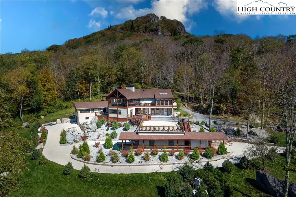 Just below awe-inspiring Dunvegan Peak, this exceptional estate, offering over 7,400 square feet of living space, boasts views of Sugar Mountain and Grandfather Mountain. The home’s gracious layout and upscale finishes are thoughtfully designed to support multi-generational living. Go into the expansive great room where vaulted ceilings, warm wood details and a floor-to-ceiling stone fireplace set the tone for timeless mountain elegance. Enjoy year-round views in the glass-enclosed sunroom, complete with a stunning stone fireplace. The gourmet kitchen is equally impressive, featuring stainless steel appliances, a large island and access to two decks. Included in this side of the south wing is a half bath, laundry room and elevator. The north wing boasts a luxurious primary suite with spa-inspired bath, jetted tub, glass-door shower and dual vanities, along with a walk-in closet. Two additional guest suites each feature onyx stone baths and walk-in closets. One of the suites also includes a light-filled office with views and direct access to a side deck. For large groups or guests, the lower level offers remarkable flexibility with a fourth bedroom suite, three additional bonus rooms used as sleeping quarters, two additional full baths, a second laundry room, full pantry, workshop, fitness room, cozy den, and an expansive family/game room complete with a bar. Additional highlights include some radiant-heated tile flooring on the lower level, bamboo flooring, multiple garages and carports, and storage. Gently graded steps lead to the lower carport, leading to two additional sleeping rooms, a full bath, electric baseboard heat and garage with select appliances. Ideally minutes from dining and grocery options, it is also a short drive to Sugar Mountain Resort & Golf and heart of downtown Banner Elk. Listing brokers are in the process of finding permits for the basement remodel and addition. Seller is working to finalize four outstanding permits with Avery Co. There is a pending lawsuit against POA for STR restrictions.