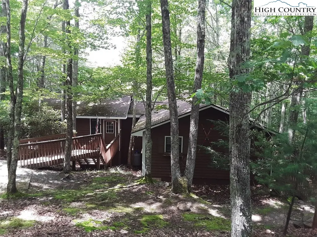 This quiet, wooded property features 5 bedrooms and 4 bathrooms, and the gently sloping adjacent lot (#348) is included in the list price! A perfect mountain retreat with plenty of bedrooms and bathrooms for friends and family. There is a large wet bar off the living room for entertaining by the cozy fireplace. Flooring has been updated throughout and there is a large deck off of the kitchen/dining area. A large primary bedroom boasts enough space for a sitting area, and it has its own secluded balcony looking out to the mountain ridge view. Convenient location near Beech Mountain Club and Beech Mountain Ski Resort. It is being sold fully furnished except for a few personal items.