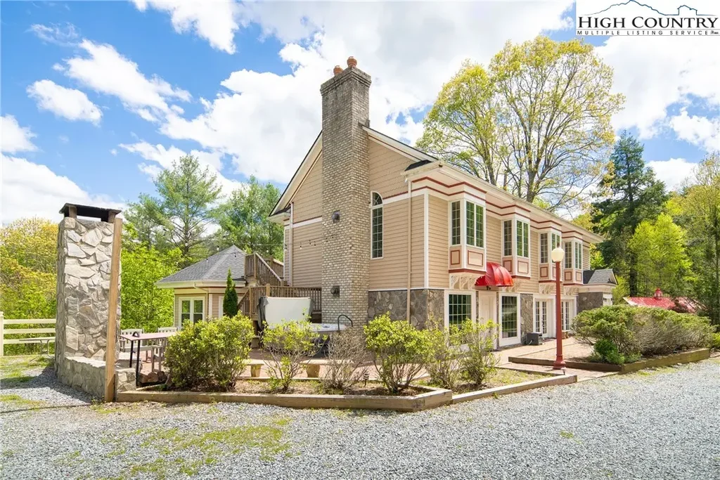 Amazing opportunity in the very heart of the historic Valle Crucis community--a grand primary home or sought after vacation rental or a combined business/residential use--this property can fulfill a variety of mountain dreams! With over 5000 SF of heated living space and extensive updates in 2021, this home offers expansive living areas, a beautiful master suite with FP and spa bath, 3 more spacious bedrooms and baths, a great room with beamed vaulted ceilings and a large yet cozy den w/gas FP plus basement game room. Step outside to the wonderful outdoor entertaining area with wood burning stone FP, hot tub and grill. The huge kitchen is a chef's dream with so much space and light, 2 refrigerators and seating for 14 plus a dumbwaiter! Sweet hexagonal light filled sunroom is on 1st floor plus a flex room set up as a sleeping area. All situated on a beautiful 2.9 acre parcel with completely flat access off paved Broadstone Road, more than ample flat parking plus 18X24 outbuilding currently used for storage. List of seller improvements include new roof in 2021, new wood floors 1st floor and refinished upstairs, 2 new HVAC units, outdoor terrace w/ hot tub, FP and grill, granite to kitchen plus new stove and DW and lower level improvements as well. This property was originally built and approved as business/residential use with business use on ground level and living quarters upstairs. 2nd owner used as a duplex and seller converted to luxurious second hone/vacation rental. Offered beautifully furnished and equipped. Centrally located--5 minutes to Valle Crucis Riverside park & Mast Store and an easy drive to Boone, Blowing Rock, Banner Elk and beyond, location and access does not get any better than this! Seller manages rentals himself but has also used as a second home. This is a one of a kind property! Seller to be reimbursed for propane at closing.