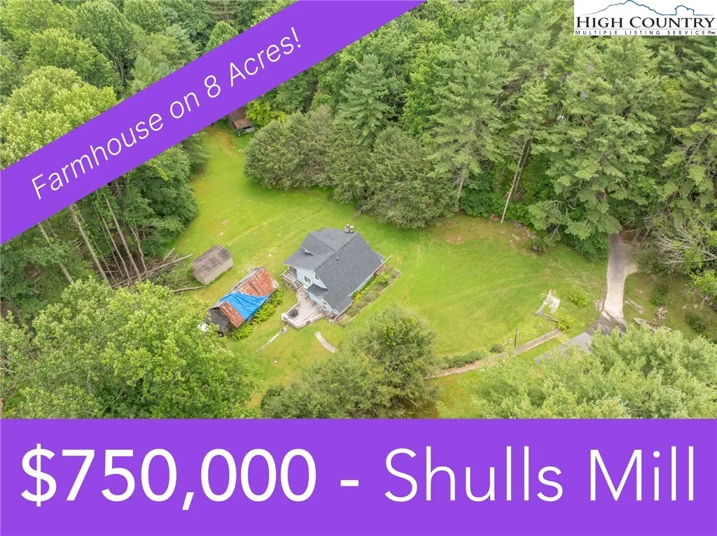 Beautiful farmhouse on 8ac - prime for a developer, unrestricted land! The land is gentle and there's a rushing creek at the bottom of the property. Simple a one of a kind opportunity minutes from downtown Blowing Rock. Farmhouse is has been well maintained. New roof in 2025. Mini Splits added throughout home in 2025 as well. Road will need to be constructed off of Shulls Mill Rd. Home doesn't have connection to shared well after Helene. No water currently, well needed. Come take a look at this mountain gem!