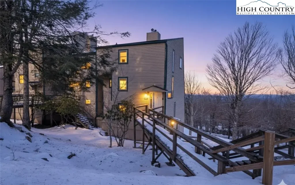 Welcome HOME to "Beech Altitude," a premier 3 LEVEL - END UNIT condo perched at over 4,500 feet in elevation on BEECH MOUNTAIN. You will be hard pressed to find another property that offers these VIEWS & LOCATION! "Beech Altitude" offers you a front-row seat to vast mountain ranges w/ breathtaking LONG RANGE VIEWS that stretch across the horizon into Tennessee. Ideally located minutes from SKI BEECH RESORT which is the HOT spot on Beech Mountain for winter sports enthusiasts and summer adventurers alike. As an end unit, the condo is bathed in extra natural light and offers enhanced privacy allowing you to fully immerse yourself in the serene BEECH MOUNTAIN surroundings. The heart of the home is the open-concept main level where a wood-burning fireplace serves as a cozy focal point for gathering after a day of outdoor exploration. The floor plan flows seamlessly into the dining area and kitchen while sliding glass doors open to a spacious rear deck—the perfect spot for morning coffee and watching local wildlife. The entire upper level is dedicated to a spacious loft bedroom suite complete with a full bath and its own private deck. The lower level offers excellent separation for family and friends which features 2 guest bedrooms, a full bath & additional 1/2 bath along with a laundry closet. With only three steps to the entry, this unit provides easy accessibility for all ages making it an excellent choice for an investment property. Some recent upgrades include a new roof in 2022, balconies repaired, newer windows, flooring, updated bathrooms, new electrical panel, all plugs and light switches are WiFi /Alexa connected devices (smart home). Condo is nicely furnished & is being sold turn-key making it perfect for a full-time residence, a vacation getaway or a rental investment property. The Beech Mountain Club membership can be purchased if desired. Property has never been rented so there is no rental history available. The monthly special assessment of $123 ends June 2026.